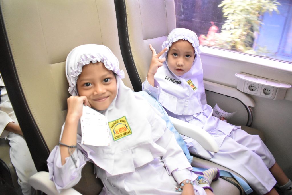 Momen yang paling ditunggu pun tiba, yaitu saat anak-anak menaiki kereta api menuju Binjai. Dengan tertib, mereka mengikuti arahan guru untuk duduk dengan rapi dan menjaga sikap selama perjalanan. Di dalam kereta, anak-anak tampak sangat senang menikmati pengalaman baru sambil melihat pemandangan di sepanjang perjalanan.