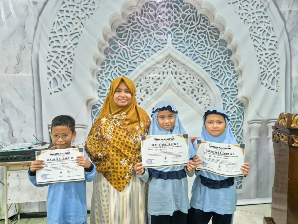 Terlaksana sudah kegiatan pengumuman kenaikan jilid dan tahfizh SD AL-FITYAN MEDAN dengan diawali pembukaan oleh ustadzah eva, tilawah diwakilkan oleh siswa dari masing-masing level dan dilanjutkan dengan pengumuman siswa yang telah lulus naik jilid 1 hingga Al-Qur’an dan dilakukan tes bacaan hingga tes ilmu tajwid oleh koordinator Al Qur’an. Setelah itu lanjut pengumuman siswa yang telah menyelesaikan tes hafalan 1 juz sekali duduk dan diberikan sertifikat sebagai bentuk penghargaan atas keberhasilan yang diraih ananda dalam ujian 1 juz hafalannya.
