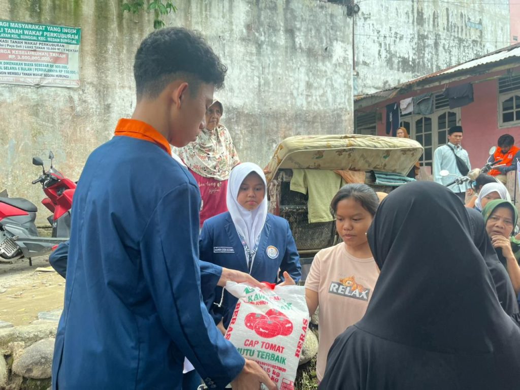 Pada pelaksanaan kegiatan ini, OSIS SMP Al-Fityan Medan menyalurkan 27 paket sembako kepada warga yang terdampak banjir di wilayah Kampung KB Sunggal Berkah. Penyaluran bantuan dilakukan secara langsung oleh para anggota OSIS dengan pendampingan dari para pembina, yaitu Ustadz Ali Muddin Simanullang, Ustadz Mora Ganda selaku Koordinator UKS OSIS Bidang Humas, serta Ustadzah Suriani Hasibuan.