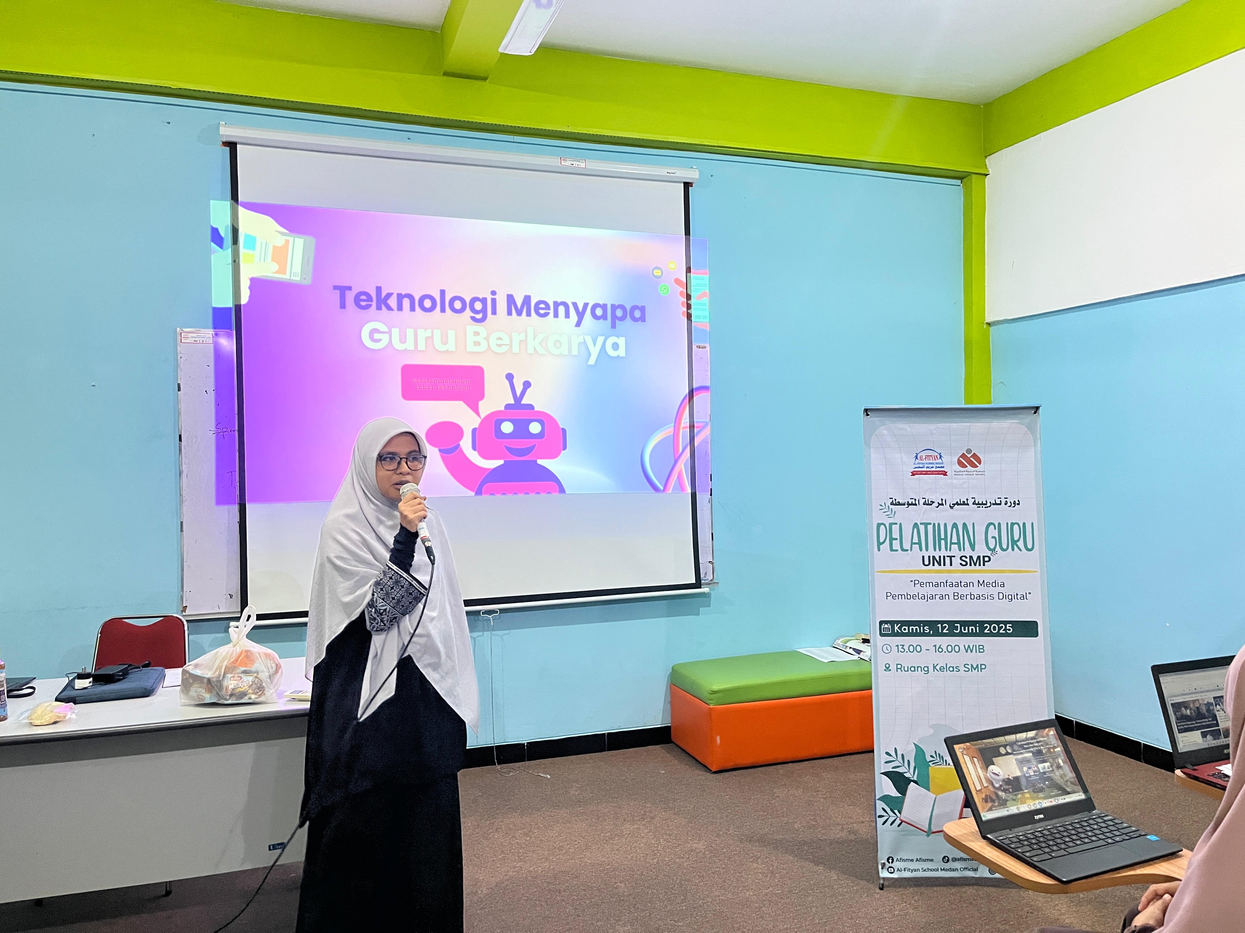 Kegiatan pelatihan ini dibawakan oleh Ustadzah Khairunnisa Lubis, S.Pd dan diikuti oleh guru SMP Al Fityan School Medan dengan antusias yang luar biasa. Melalui kegiatan pelatihan ini, para guru tidak hanya semakin percaya diri menghadapi tantangan zaman, tetapi juga mampu menjadikan teknologi sebagai sahabat karib dalam membangun dan membimbing generasi hebat masa kini. Bersama teknologi, guru bisa berkarya. Bersama teknologi, guru bisa menyentuh semangat belajar siswa.
